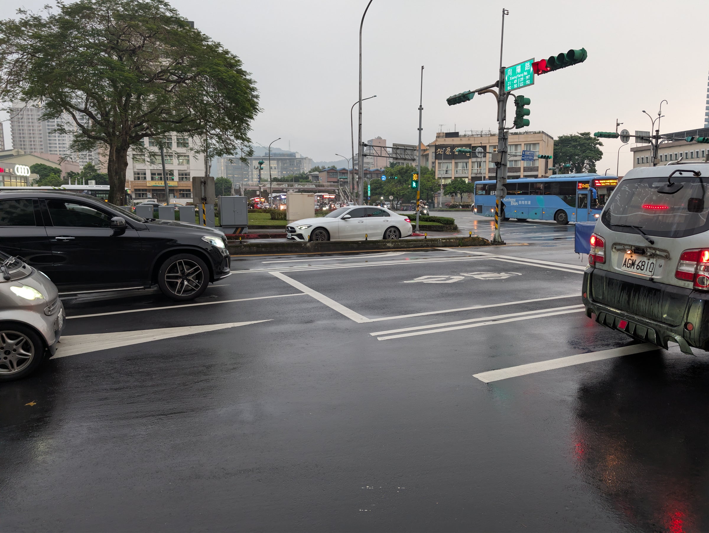 This setup highlights one glaring difference from what I see at home in Portland: the cars actually respect it. In Portland, bike boxes are painted bright green, incredibly obvious, and often paired with “no turn on red” signs. Drivers typically ignore all of this, pulling straight into the bike box to make a right-hand turn regardless of the signs and markings. In Taipei, there are no bright green painted boxes, yet I didn’t once see a car inch forward over the line. They stayed back, even at small intersections with no bikes or scooters in sight.