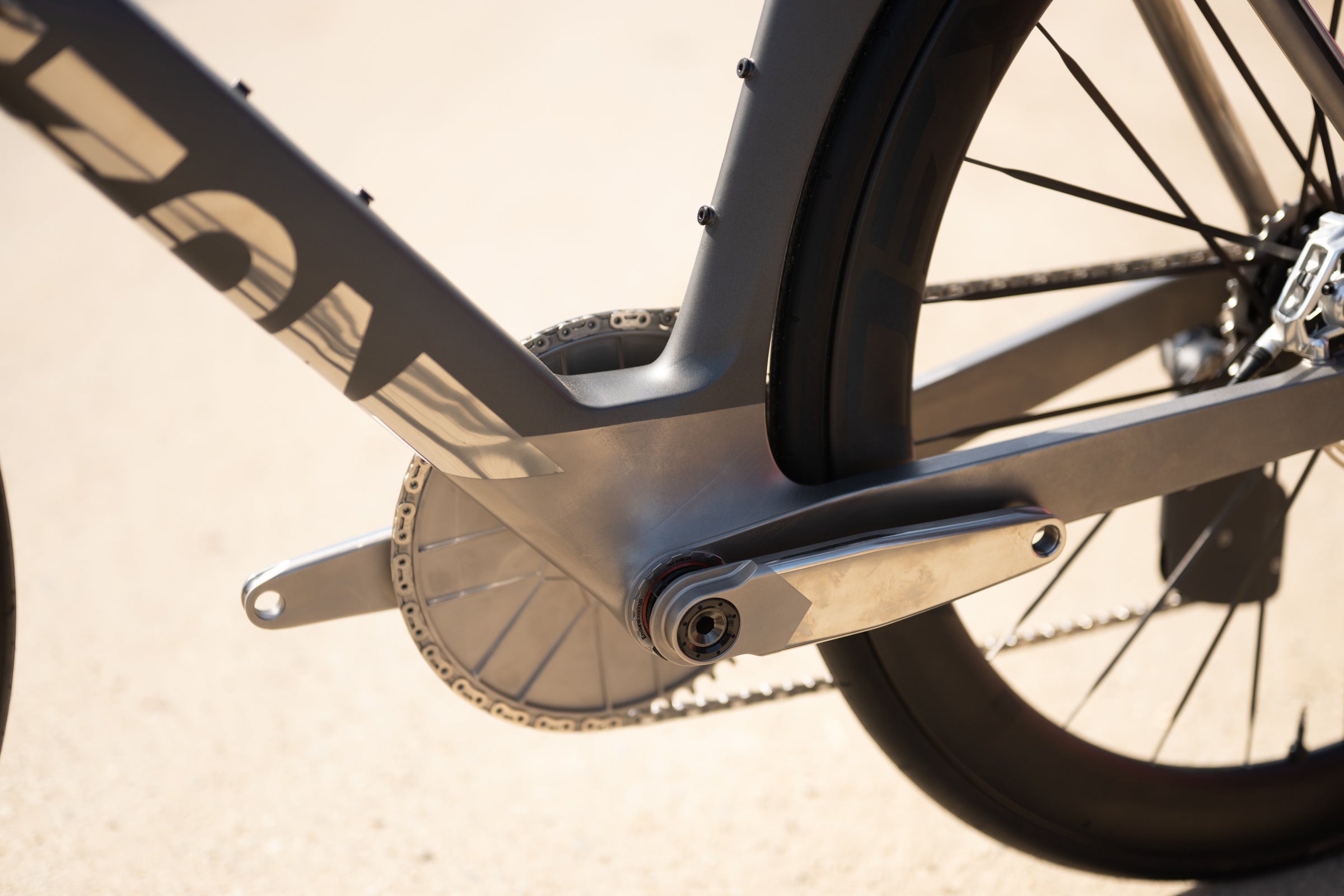 Stiffness is equally critical for a race bike, and No. 22 claims this could deliver the “most efficient power transfer available on a Ti frame.” The freedom of shapes made possible by 3D printing is key to hitting that target. During the process, the down tube, bottom bracket intersection, and chainstays have all been redesigned to balance signature titanium ride quality with race focused drivetrain stiffness.